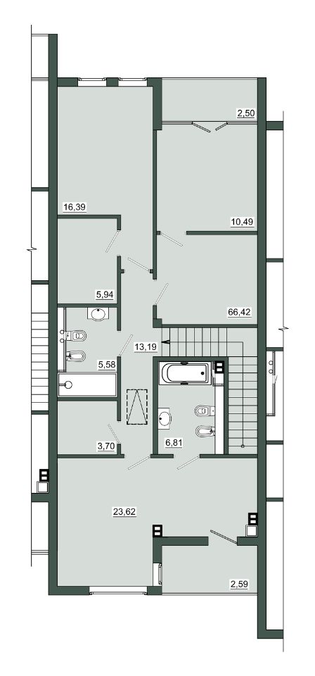 - на втором — приватная зона с несколькими спальнями и санузлами.